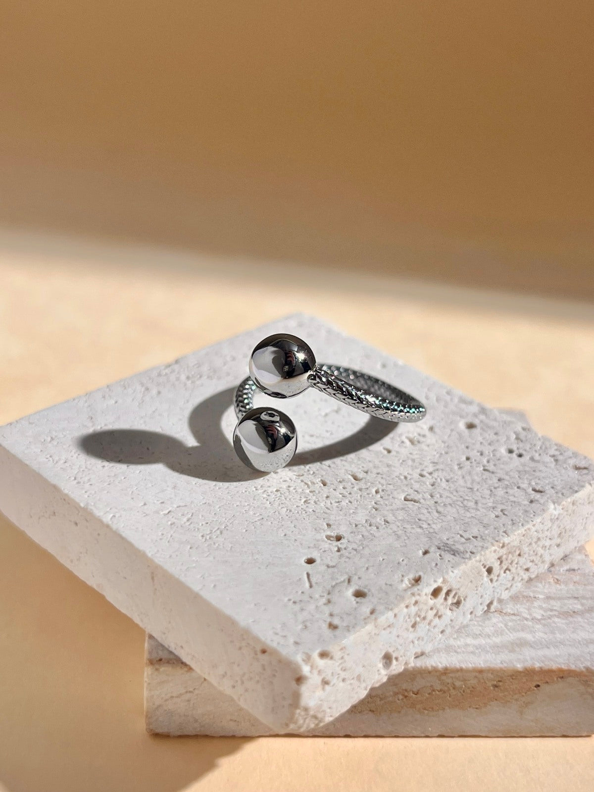Bague ajustable en acier inoxydable doré, ornée de deux boules lisses pour un style minimaliste et raffiné. Sa finition brillante et sa résistance à l’eau en font un bijou durable et hypoallergénique. Idéale pour un look moderne au quotidien ou une touche chic en soirée. Confortable et modulable, elle s’adapte à toutes les tailles de doigt.